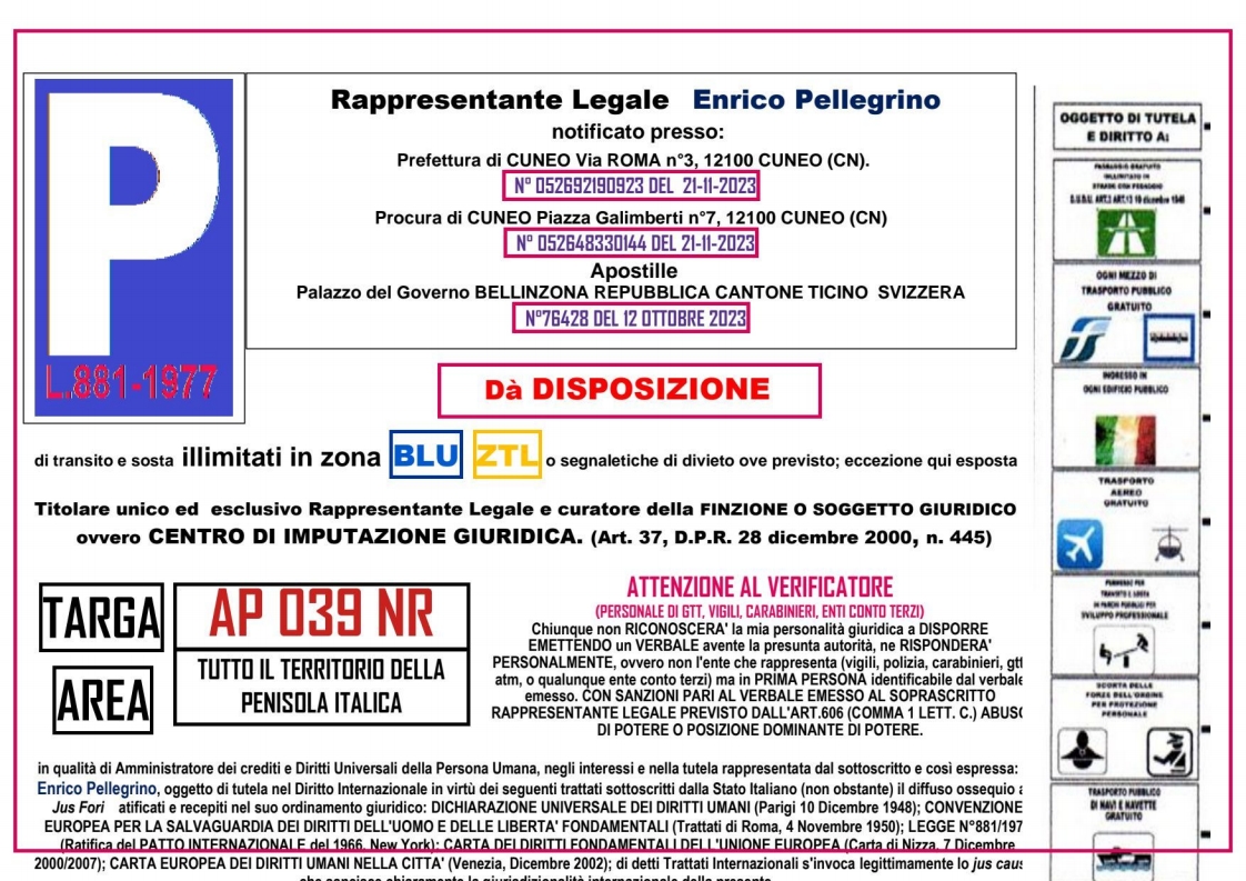 Di tutti i Trattati Internazionali, notifiche e incartamenti U.C.C.